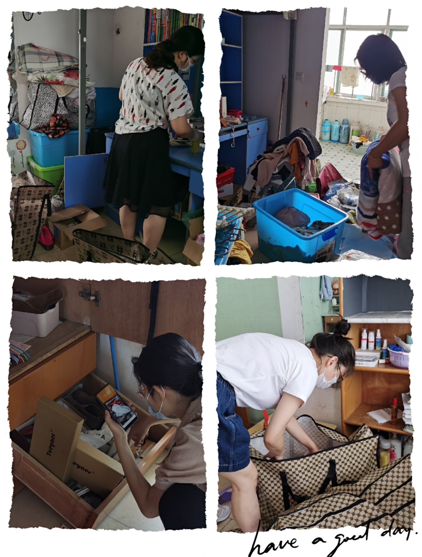 一个寝室里选择不返校的3名女生共计将近400公斤的行李,30多个打包袋填满整整一个寝室,谁能想象这竟是3位女老师,一下午的“辉煌战果”。