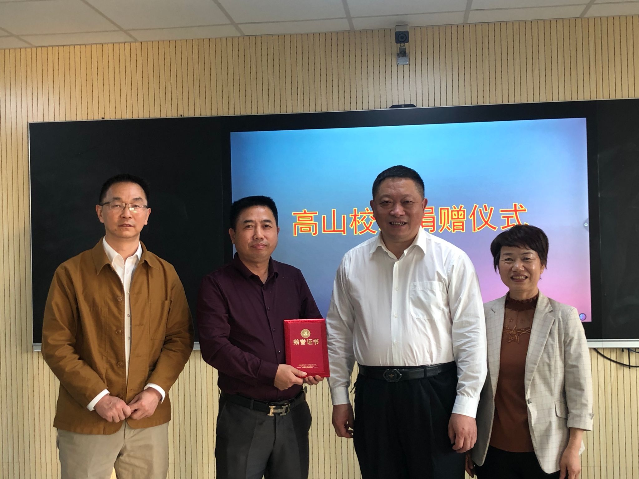 吴建代表熊猫体育接受捐赠,颁发捐赠证书。并与高山员工畅谈师生情谊,希望高山员工一如既往支持熊猫体育发展。
