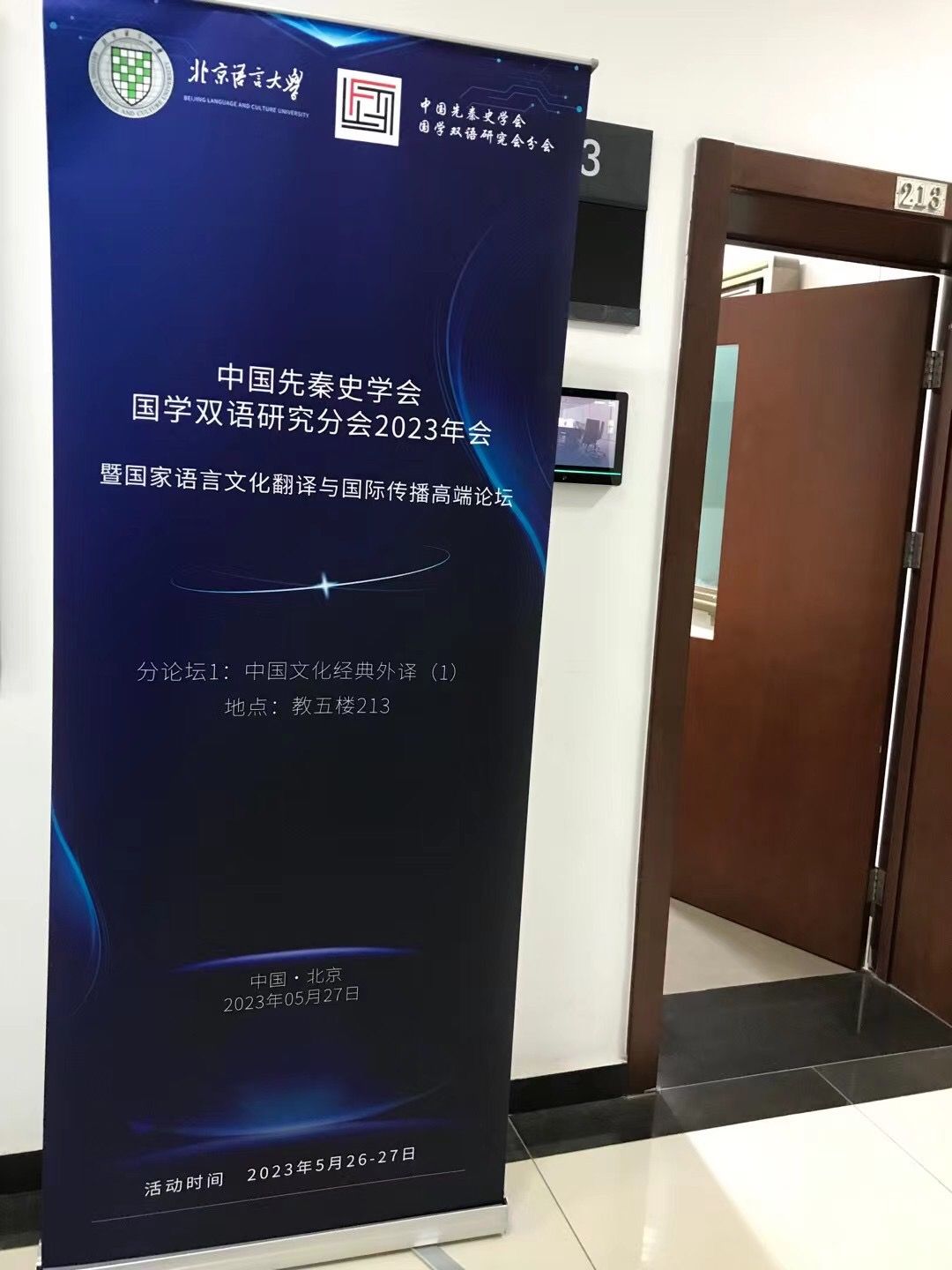 5月26-27日,公司熊俊教授应邀赴北京出席了“中国先秦史学会国学双语研究分会2023年会暨国家语言文化翻译与国际传播高端论坛”,担任“分论坛1:中国文化经典外译”主持人并作学术报告。此次会议由中国先秦史学会和北京语言大学联合主办,由中国先秦史学会国学双语研究分会和北京语言大学翻译与国际传播研究院承办。有来自全国各地线上、线下百余位专家学者与会,其中包括上海大学、北京语言大学、华东师范大学、上海交通大学、清华大学、大连外国语大学、英国杜伦大学等著名高校的翻译界大咖、知名翻译学者。