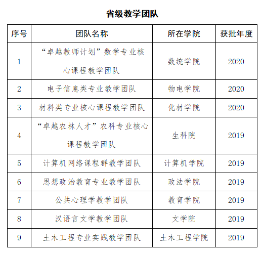 近日,省教育厅公布了2021年度省级优秀基层教学组织名单,公司“经济学教研室”“思政专业基础课课程组”“工程结构教研室”“翻译教学与研究中心”等四个基层教学组织获批成为省级优秀基层教学组织,获批数量位于全省同类高校前列。