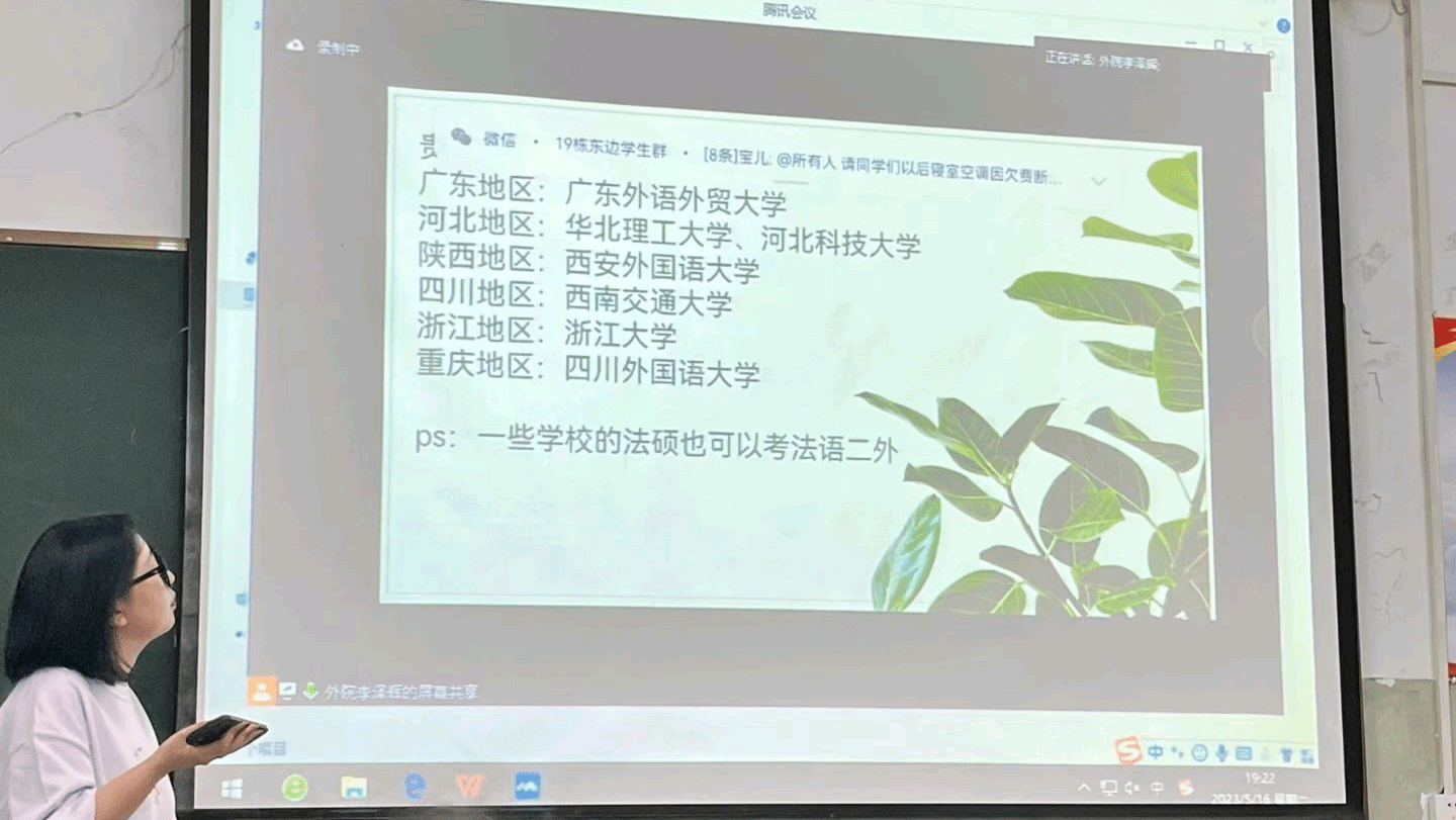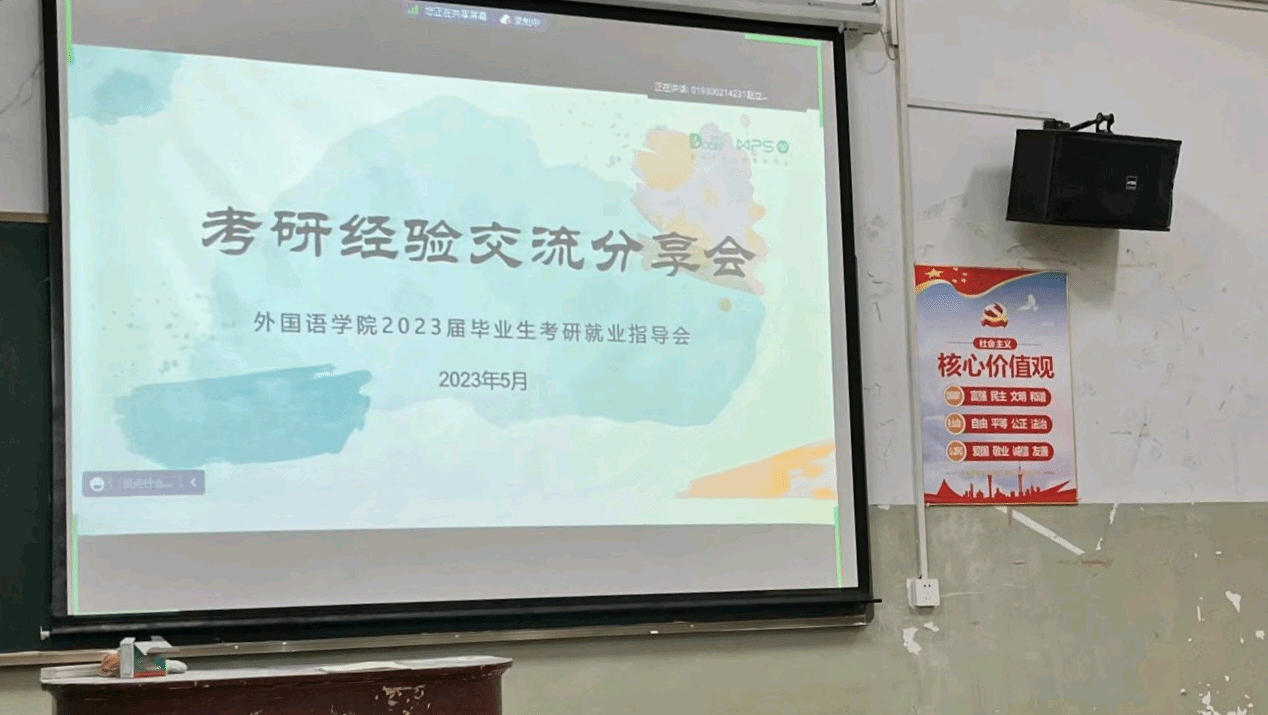 5月16号晚七点,考研经验分享会在熊猫体育106教室举行,此次分享会采用线上和线下的方式,由辅导员李泽辉主持,邀请到2023届考研上岸的周炳莹、曾成、胡荣、赵立攀等同学和在校生进行经验分享和交流。