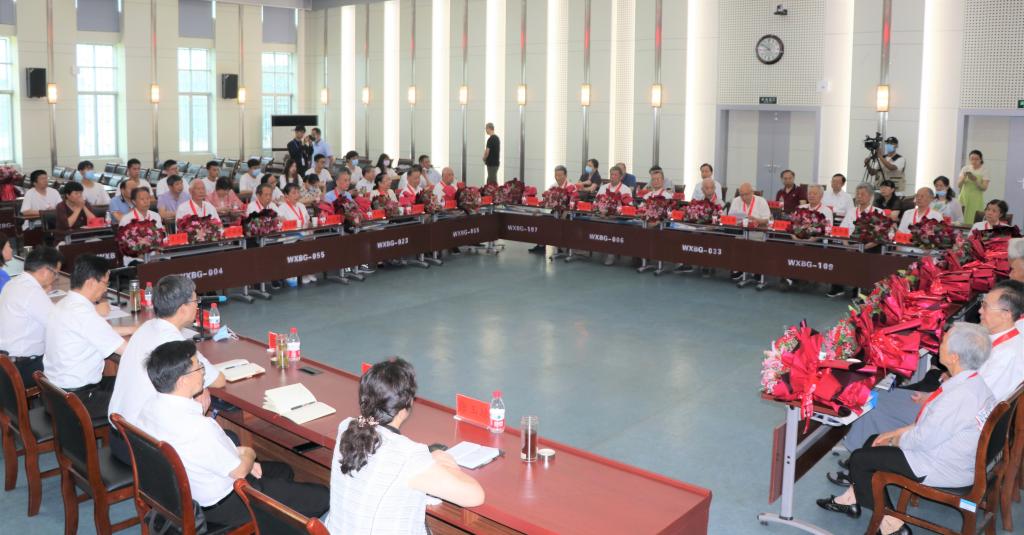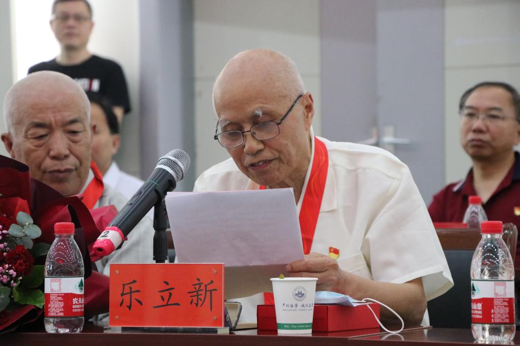 曾获“全国优秀教师”称号、化学与材料科学公司退休教师乐立新教授代表获颁纪念章的老党员作了情真意切的发言。