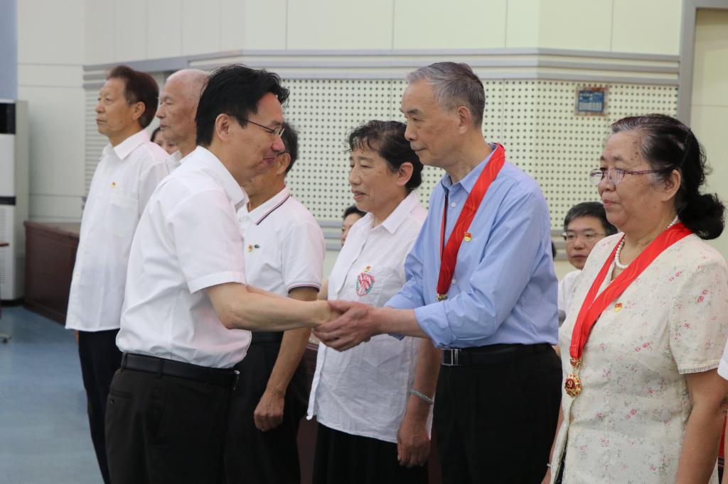 值此建党100周年来临之际,彭瑜代表公司党委向获颁纪念章的老党员们致以节日的问候和最崇高的敬意,衷心感谢全体老党员、老干部为公司发展所做的贡献。他指出,老党员们是峥嵘岁月的亲历者、是艰苦奋斗的参与者、是蓬勃发展的见证者,亲身经历了公司“从无到有”的沧桑巨变、“从小到大”的跨越发展、“从弱到强”的光辉历程。全校老党员们几十年如一日,立足本职、拼搏奉献,用最美的青春年华,默默无闻地为党的教育事业工作,“一颗红心永向党”的政治品格、“俯首甘为孺子牛”的教育情怀、“以身示范敢为先”的责任担当、“撸起袖子加油干”的奋斗精神,在党为党的崇高思想境界和优良作风,永远值得我们认真学习传承,不断发扬光大。同时,他希望老党员、老干部们一如既往的支持和关心公司各项事业的发展,继续做好传帮带、发挥余热。